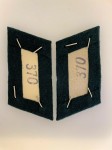 These attractive collar patches were worn by East German Border Guards. They are similar to the WWII patches but the embroidered area is actually metal 'faux embroidery'.