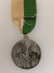This aluminium medal was awarded to the fascist Old Guard in the Italian city of Florence. Measuring 35mm in diameter, it is suspended from a length of green and white ribbon.