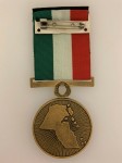 This full size bronze and enamel medal was issued to troops who participated in the liberation of Kuwait from Iraq during the first Gulf war. It measures 40mm in diameter and is complete with the correct woven ribbon.
