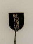 This stickpin probably worn on the civilian clothing by members of this famous S.S. unit is enameled in black with a silvered finish. The insignia itself measures about 10 x 13mm and has a knurled stickpin fitting about 45mm in length.